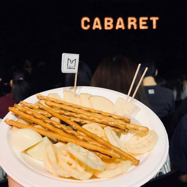 天花板上懸著一串串彩色氣球,台上掛著CABARET的霓虹字樣,